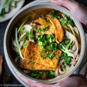 Vietnamese Vegan Pho Noodle Soup (Pho Chay) can be hearty with deep savory flavors. While this vegan pho is quicker to make than traditional beef pho, it is just as comforting and delicious.